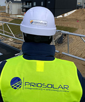 Vårt erbjudande Komplett och Nyckelfärdigt innebär att vi tar ansvar för helheten. När du beställer ett solcellssystem från PRIOSOLAR AB beställer du inte bara de fristående komponenterna, produkterna och arbetskraft. Du beställer ett optimalt projekterat och dimensionerat solcellssystem med funktionsgaranti.